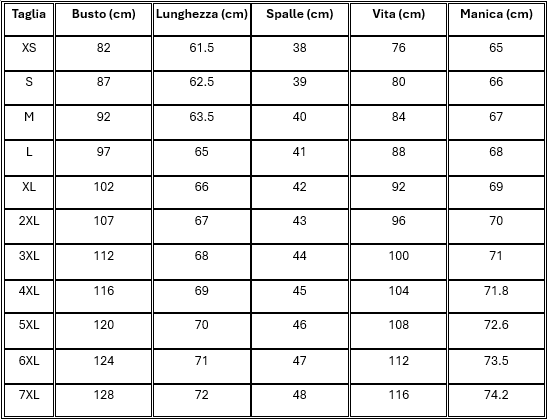 TABELLA TAGLIE: