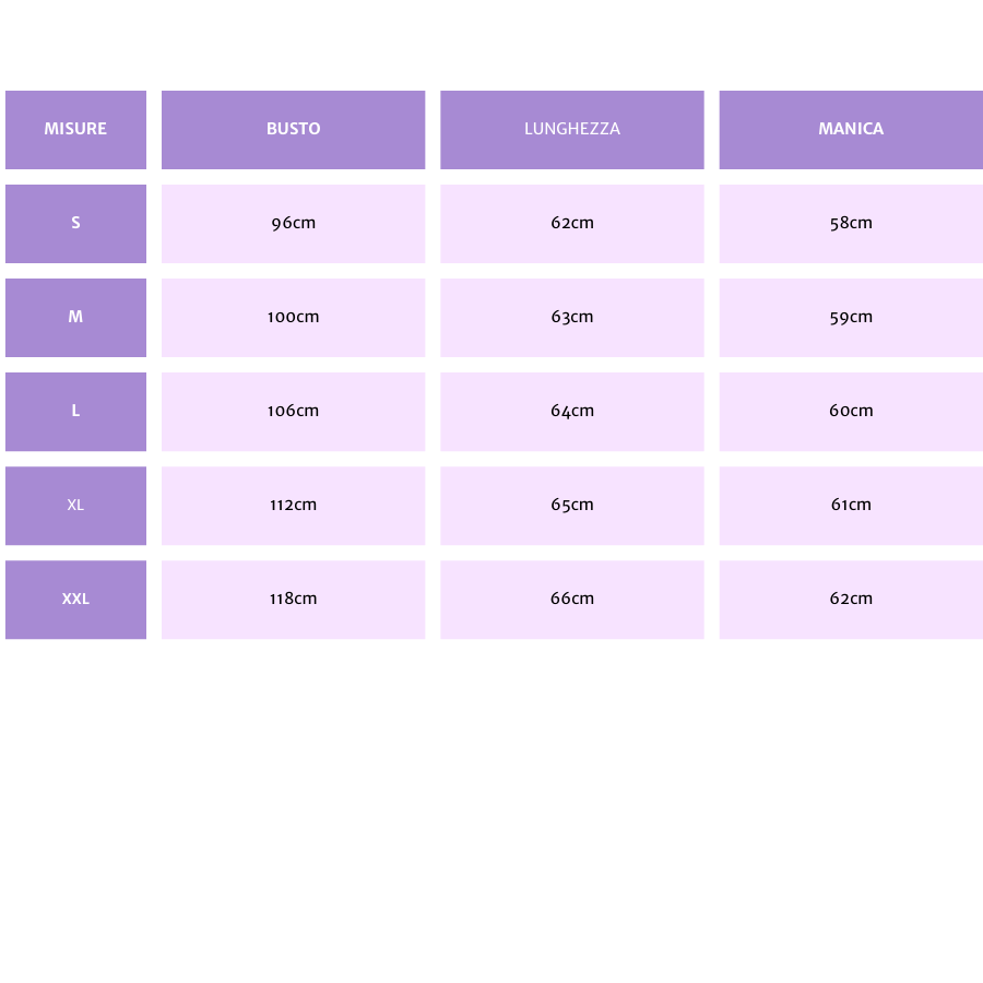 - Le taglie possono variare: consulta sempre la tabella taglie e scegli in base alle tue misure reali.